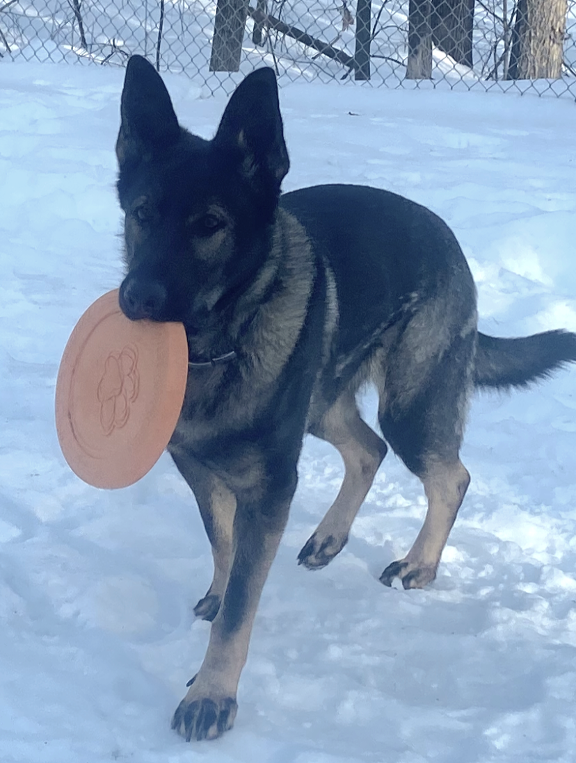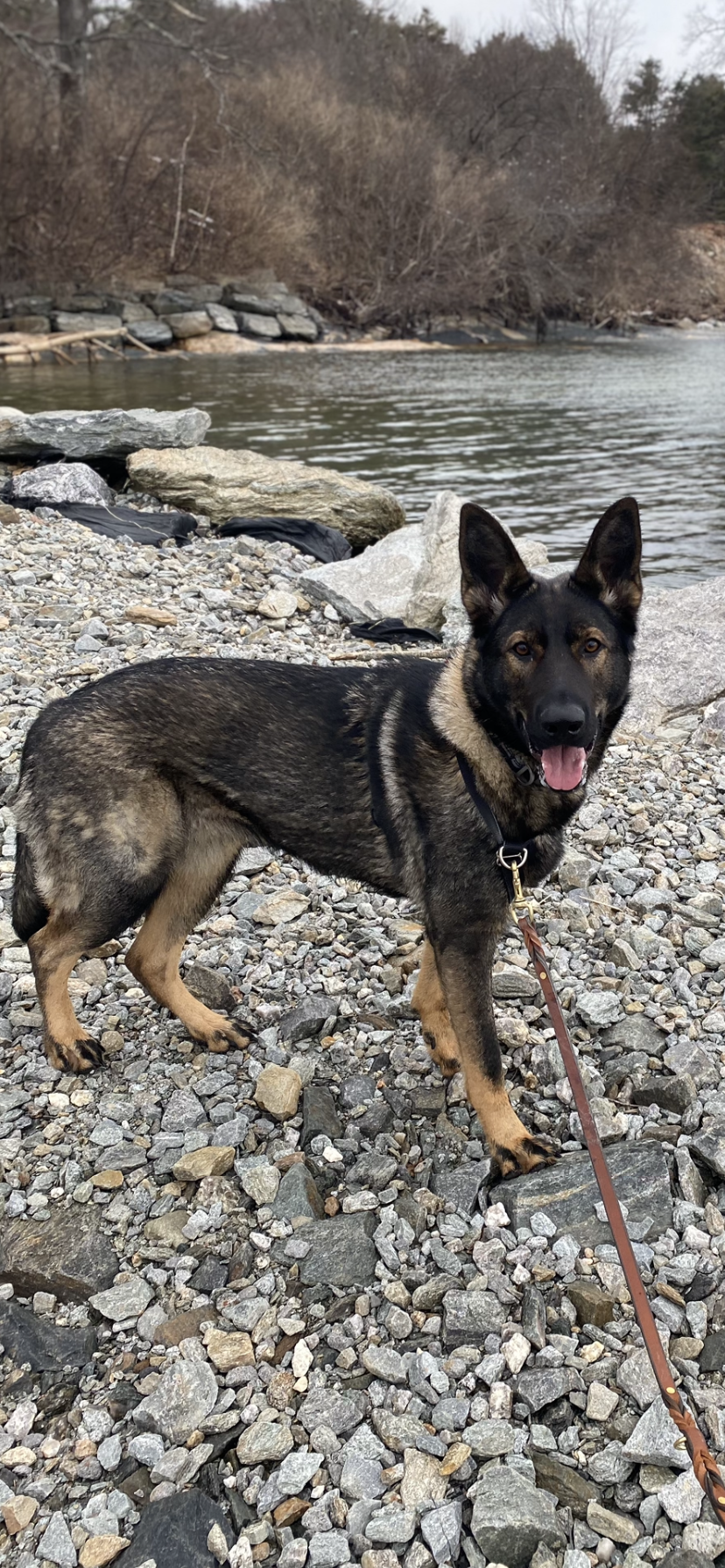 Kori was bred by us from our Vera and Brick. She is a black sable from a 1/4 Czech and 3/4 DDR /East German bloodline. She weighs 68 pounds. Kori loves life. She is always up for anything work or play. She has her CGC and AKC tracking certification to enter into a TD trial this fall of 2025. She excels in nosework just like her dad Brick! She will be competing in both AKC and NACSW trials this year. Her favorite thing to do when not using her nose is herding soccer balls in the backyard or going for a swim. She's a joy to have around, goofy, fun loving, easy and oh so smart! She plays well with other dogs after introduction and is happy to share her bed and toys. She is extremely affectionate, loving and calm in the house and is always up for a cuddle. She is a great addition to our program.